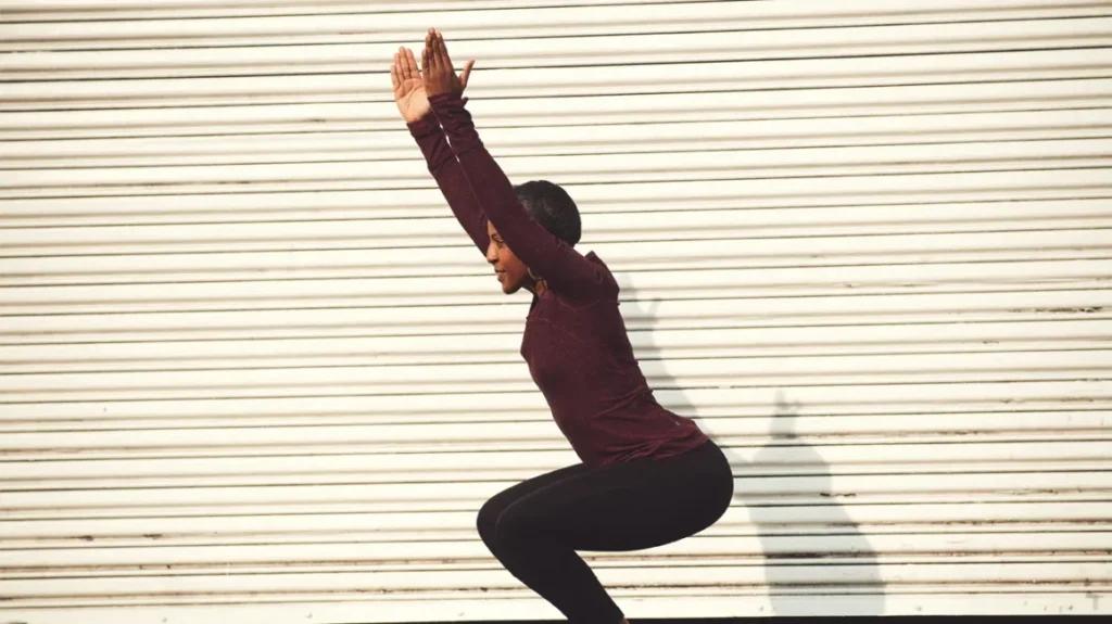 • Lower your body as if you are sitting on a chair.
